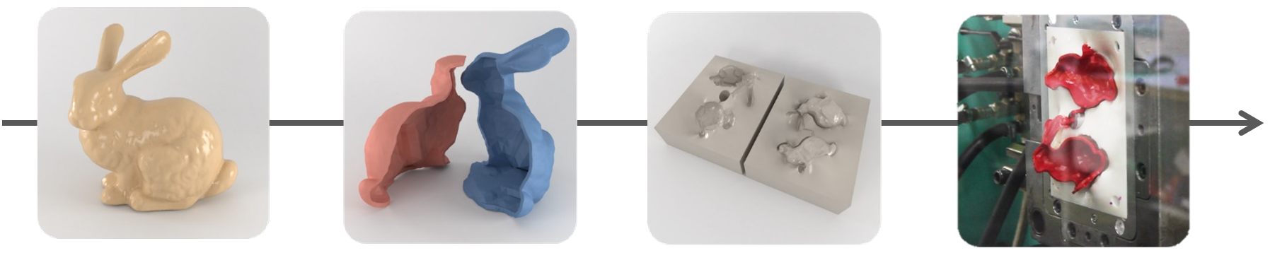 AutoMold ist ein Grundlagenforschungsprojekt des IST Austria, in dem neuartige Algorithmen entwickelt wurden, die es erlauben, Gussformen automatisiert zu konstruieren. Dies ist von hoher industrieller Relevanz, da der Formguss eine der weltweit wichtigsten Herstellungsmethoden für verschiedenste Materialien, wie Metall, Glas oder Kunststoff ist. Jedoch ist die Konstruktion und der Bau der dafür benötigten Gussformen mit hohem Zeit- und Kostenaufwand verbunden. Daher ist professionelle Gussherstellung vor allem in der Massenproduktion zu finden, wo dieser Einfluss auf die pro-Stück Kosten gering ist. Für Kleinserien oder Einzelstücke weicht man auf zeitintensivere Alternativen, wie z.B., den manuell aufwändigen Silikonformen oder dem 3D Druck aus. Wobei letzteres auch signifikante Einschränkungen in den verwendbaren Materialien mit sich bringt. Mit AutoMold haben wir eine Methode entwickelt, die den Aufwand der Gussformenkonstruktion wesentlich verringert und so die Gussherstellung auch für Kleinserien- und Prototypenproduktion sowie für individualisierte Produkte attraktiv macht. Dabei kommen neueste Ergebnisse aus verschiedenen Wissenschaftsbereichen zur Anwendung, wie der interaktiven Geometrieverarbeitung und der numerischen Optimierung. Dies erlaubt es uns die Aufgabenstellung des Gussformendesign komplett einem Computeralgorithmus zu übergeben, der automatisch eine geeignete Form findet. Der von uns dafür entwickelte Softwareprototyp ermöglicht es Vakuum- und Spritzgussformen innerhalb weniger Minuten zu berechnen - ein Prozess der manuell gewöhnlich Stunden bis Tage benötigt. Unsere Resultate wurden im Top-Journal unseres Forschungsbereichs, den ACM ToG, veröffentlicht und auf der weltweit größten Computergrafikkonferenz präsentiert.