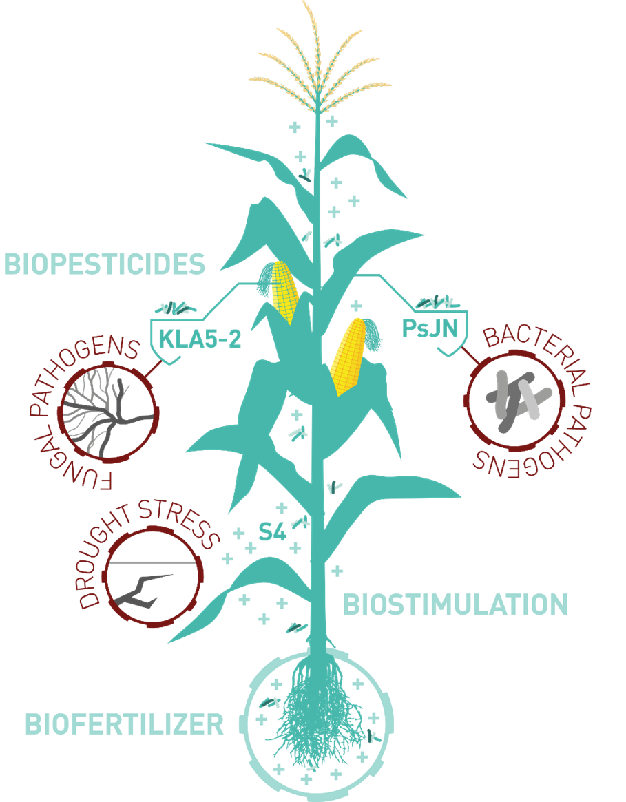 Mikrobielle Technologien sind ein vielversprechendes Instrument, um den Einsatz von Agrochemikalien erheblich zu reduzieren. In jüngster Zeit hat man festgestellt, dass im Boden lebende Mikroorganismen pflanzenfördernde Funktionen ausüben, wie die Mobilisierung von Nährstoffen, oder die Überwindung oder Bekämpfung von Pflanzenpathogenen. Daher wurde versucht, diese Mikroorganismen für die Entwicklung von Biodüngern oder Biopestiziden zu nutzen.